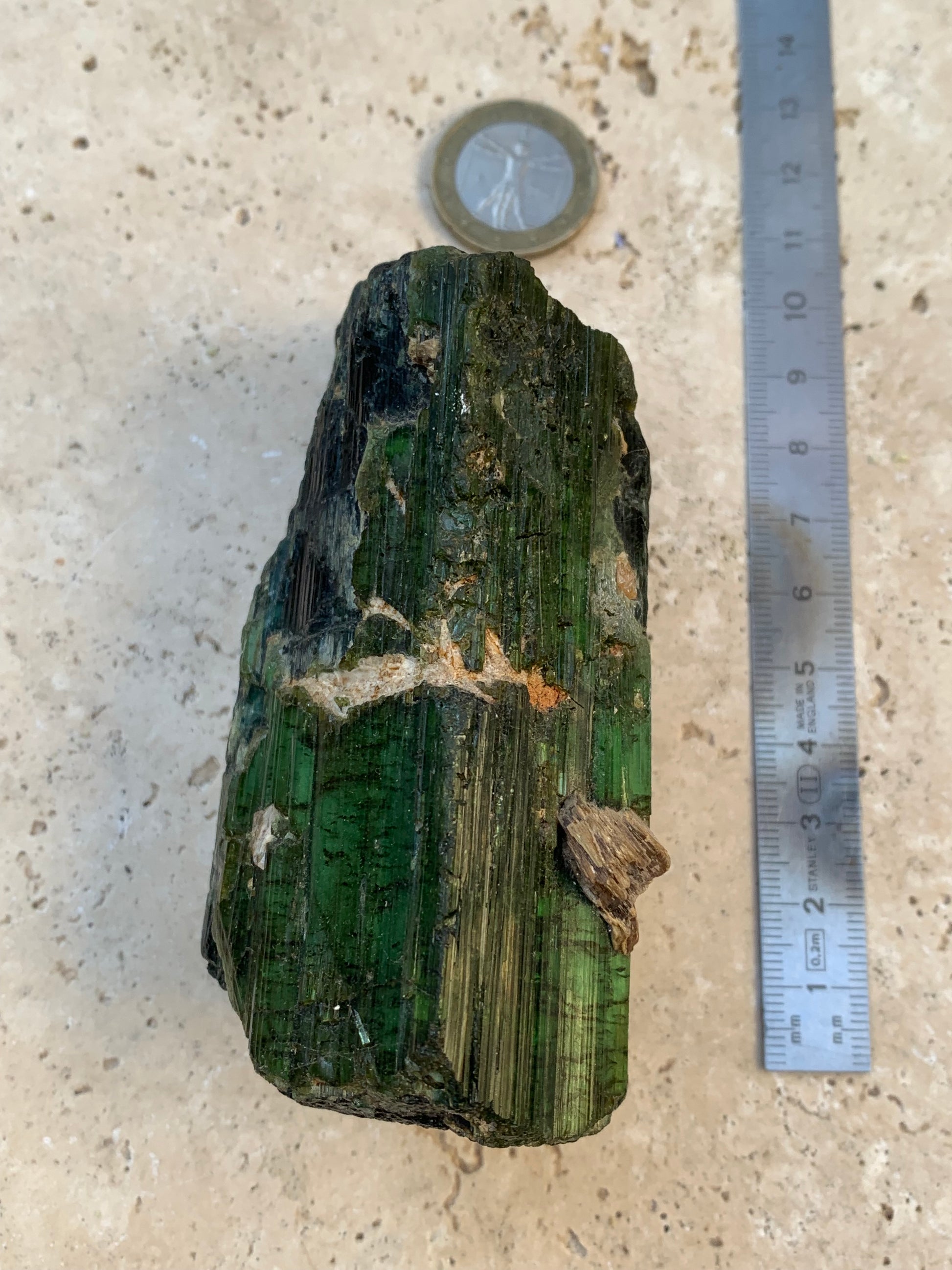 Tourmaline verte/ Verdélite, spécimen naturel de 93 x 56 x 48 mm - 444 grammes environ. Superbe pièce de belle taille !