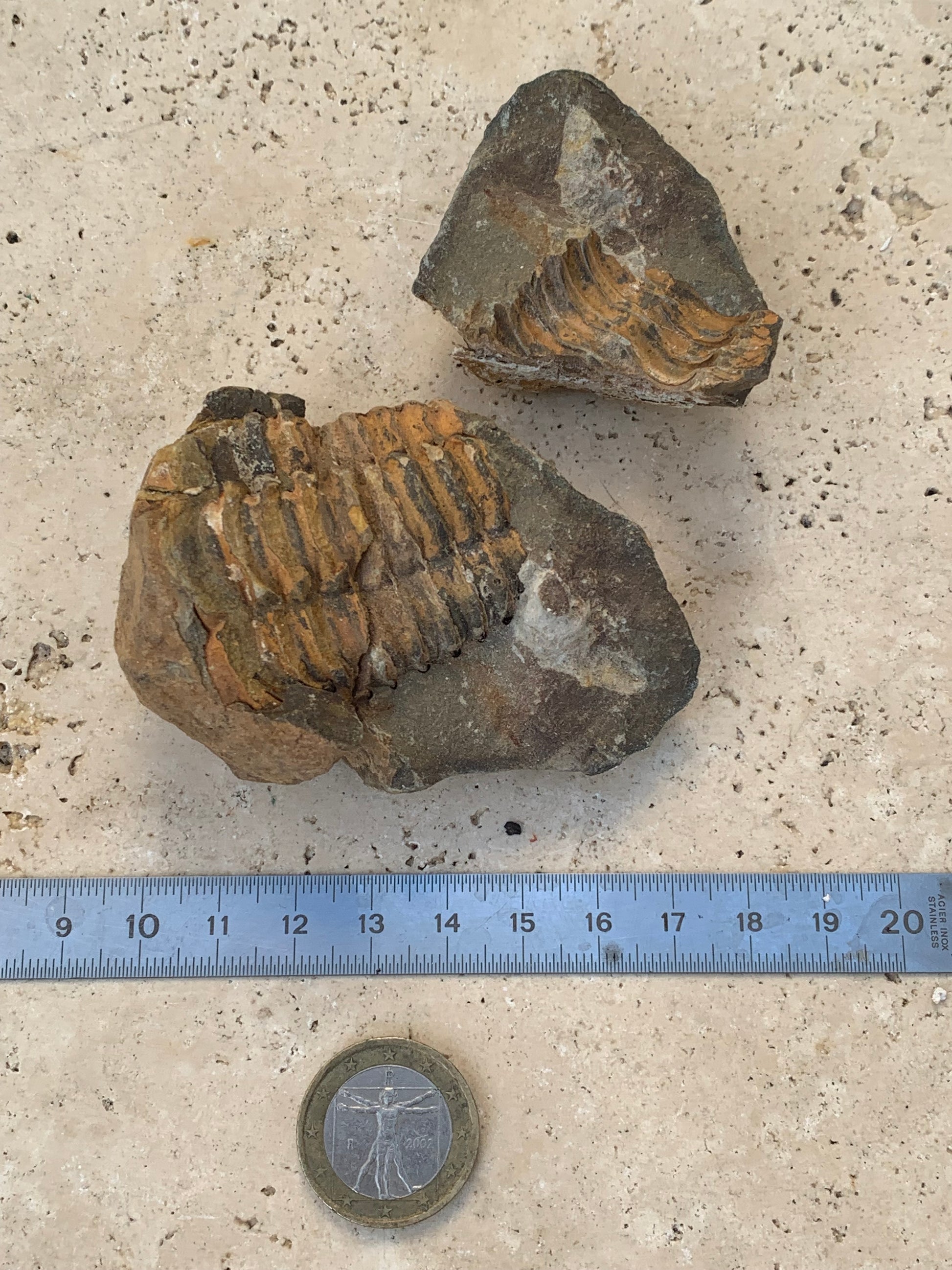 Trilobites Phacops, fossile en 2 moitiés de 76 mm x 55 x 42 - 161,5 grammes. Parfait pour collection, exposition...
