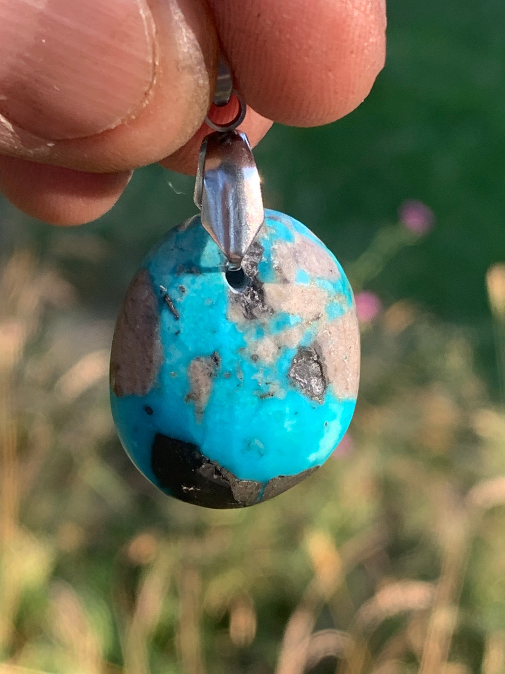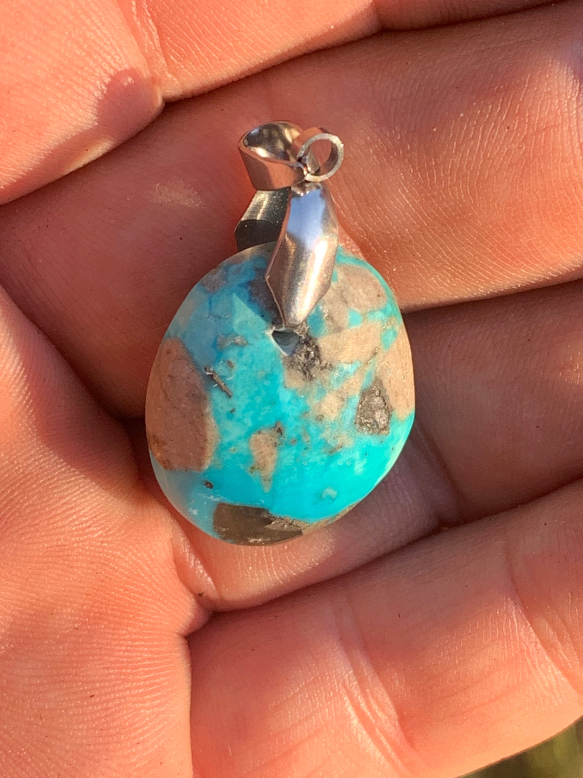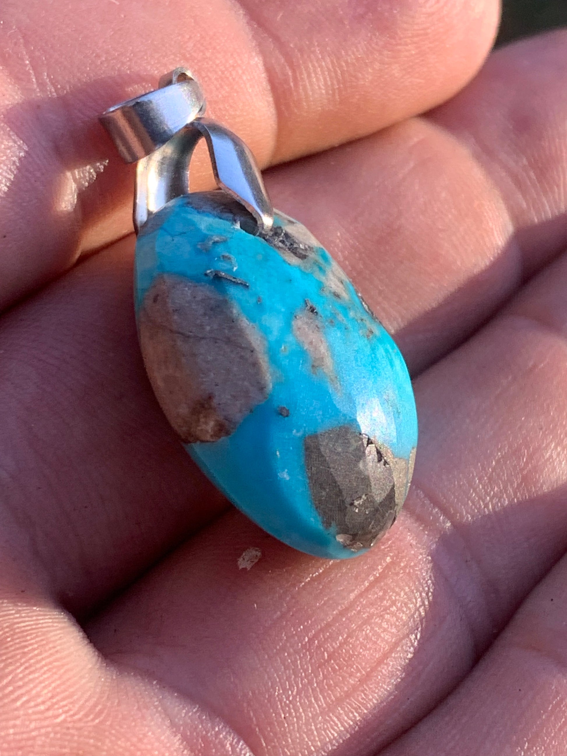 Turquoise Perse/ Iran ! Pendentif en Argent 925 de 40mm de hauteur x 20 x 12 - 8,8 grammes. Vendu avec cordon réglable de couleur noire !