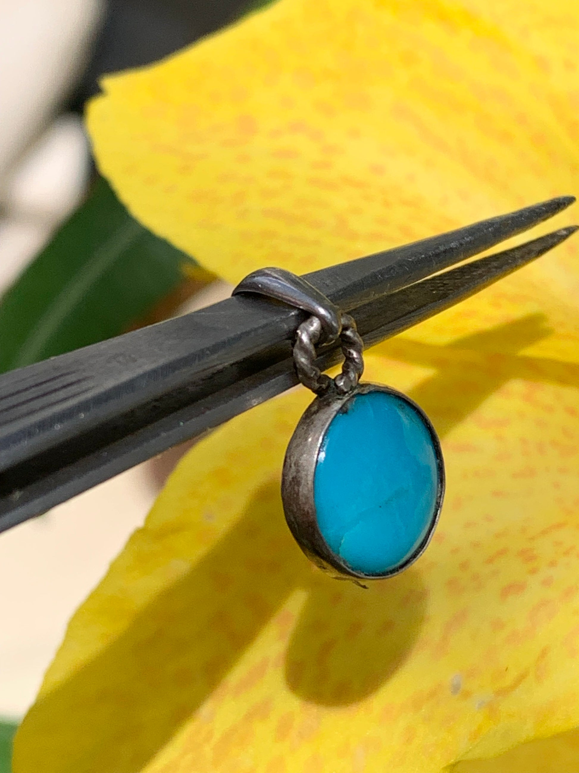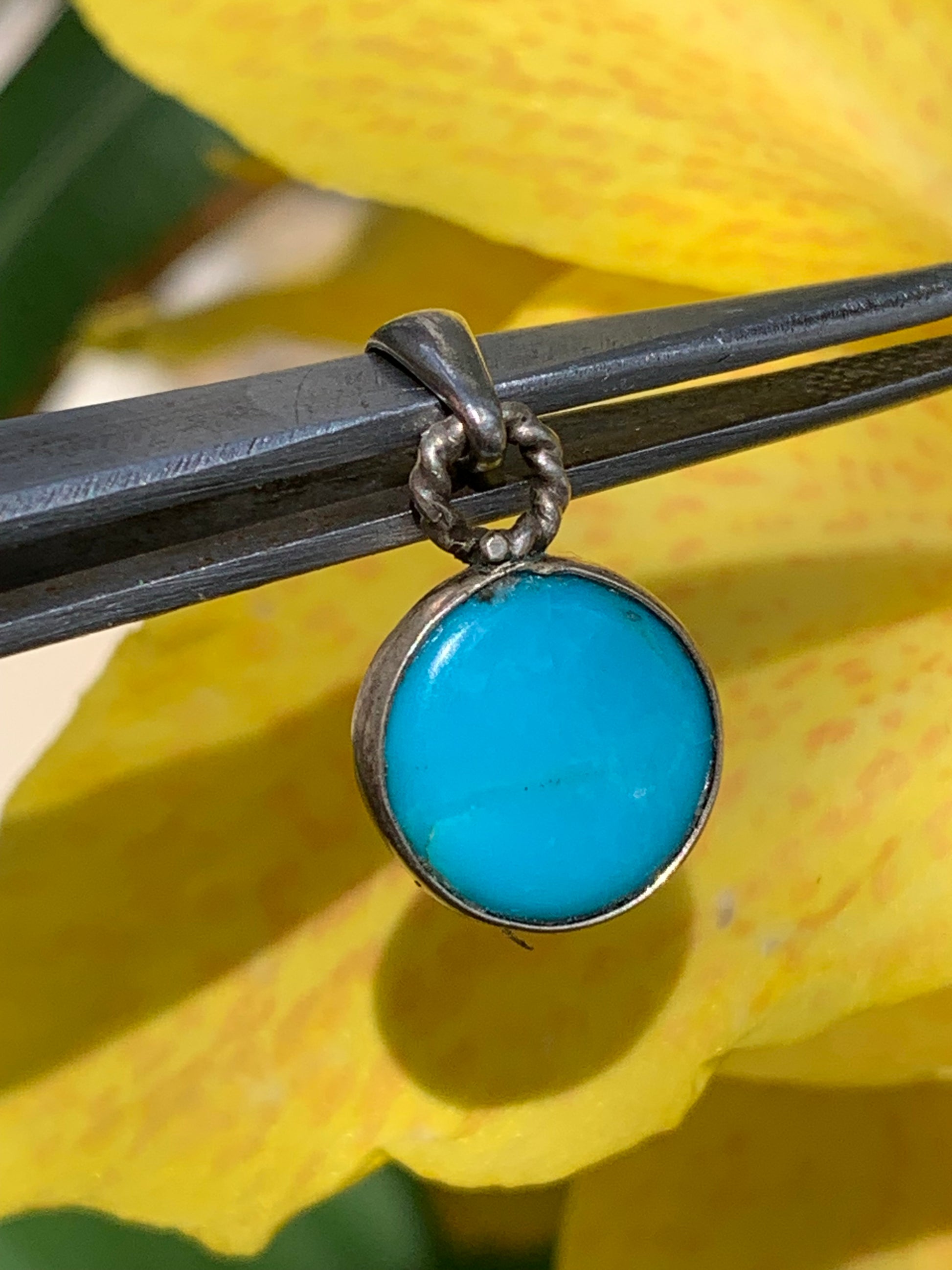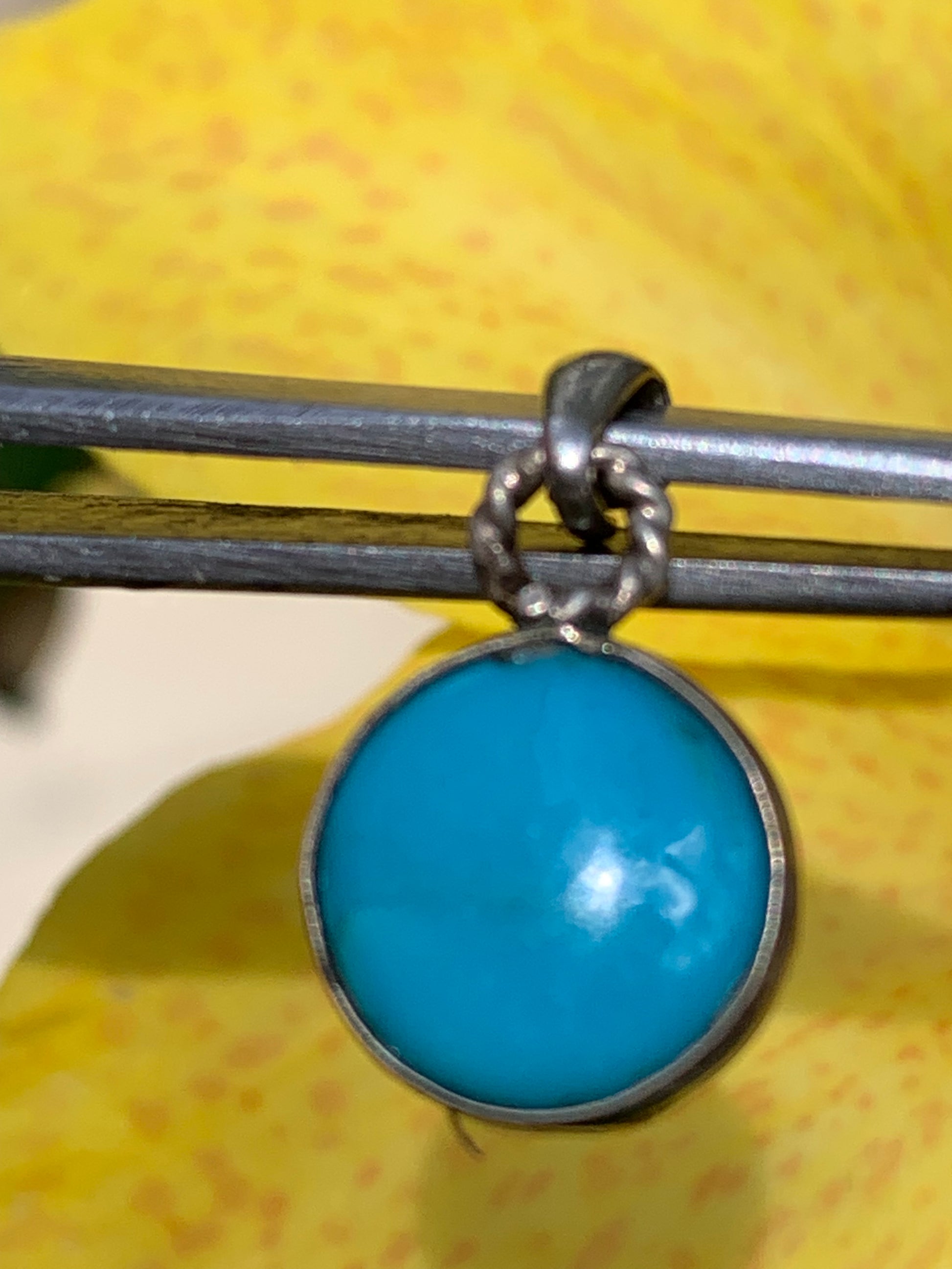 Turquoise des U.S.A ! Pendentif en Argent 925 de 22mm de hauteur x 12 de largeur x 4 d'épaisseur. Vendu avec cordon réglable de couleur noire !