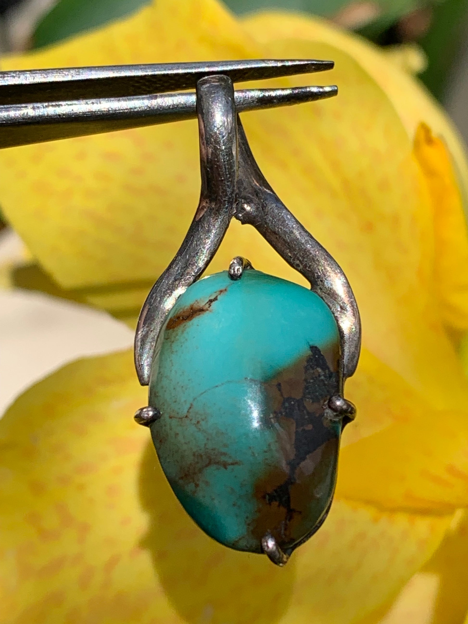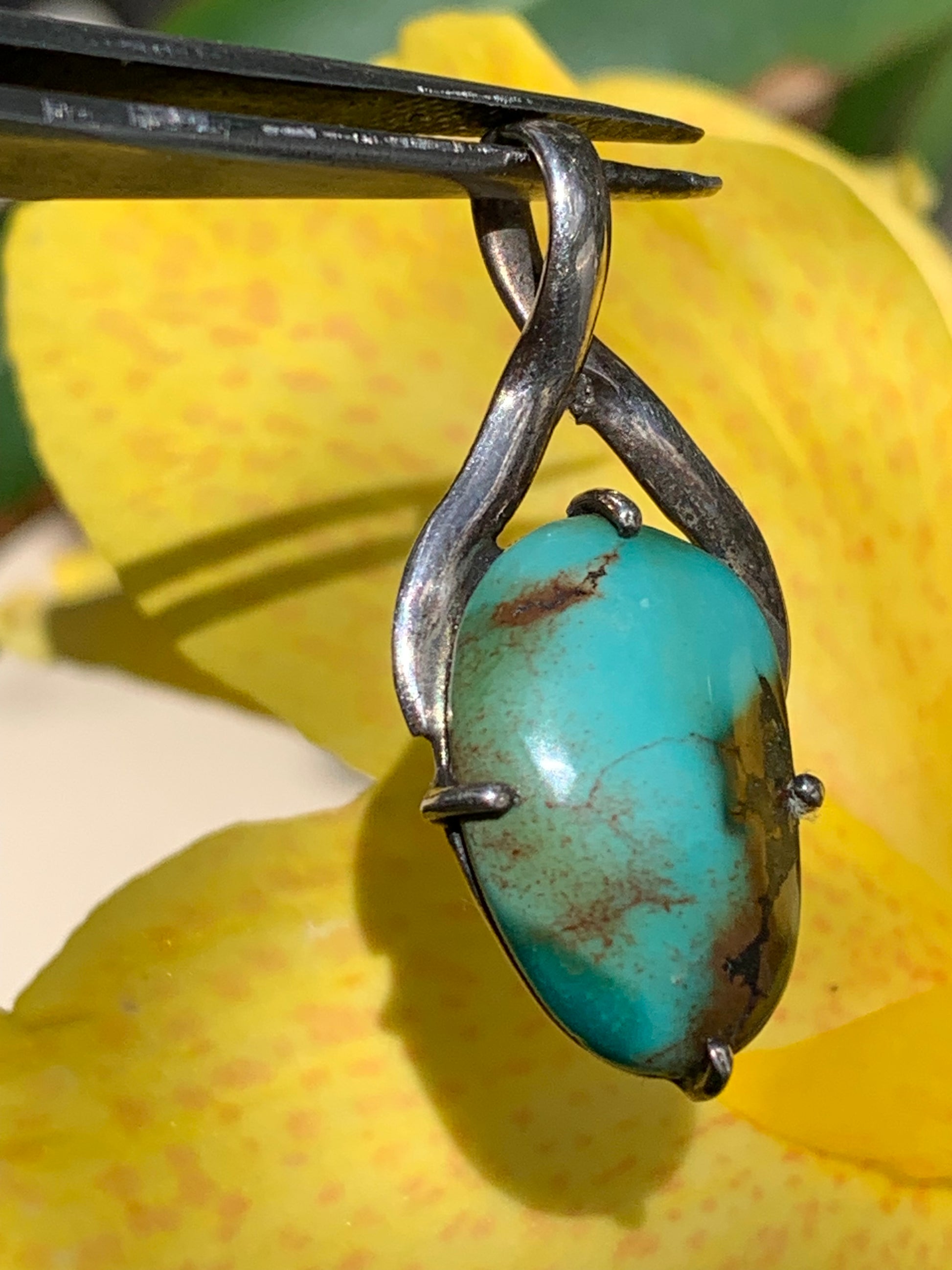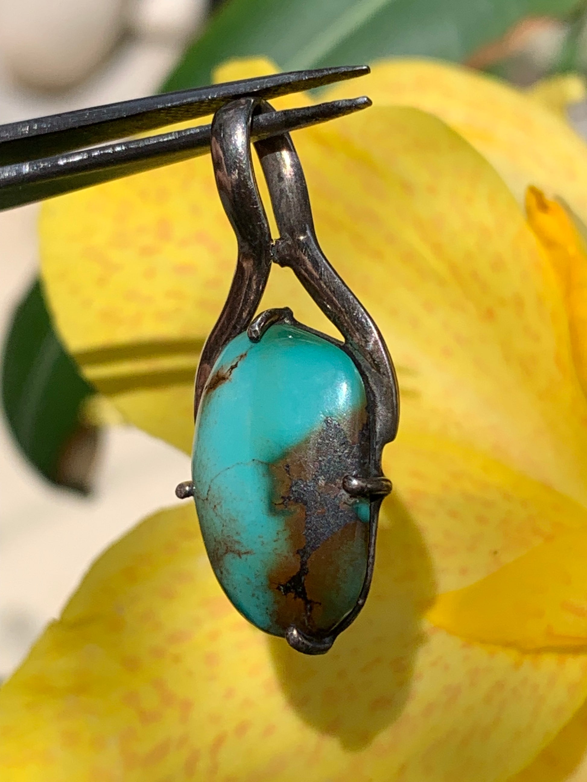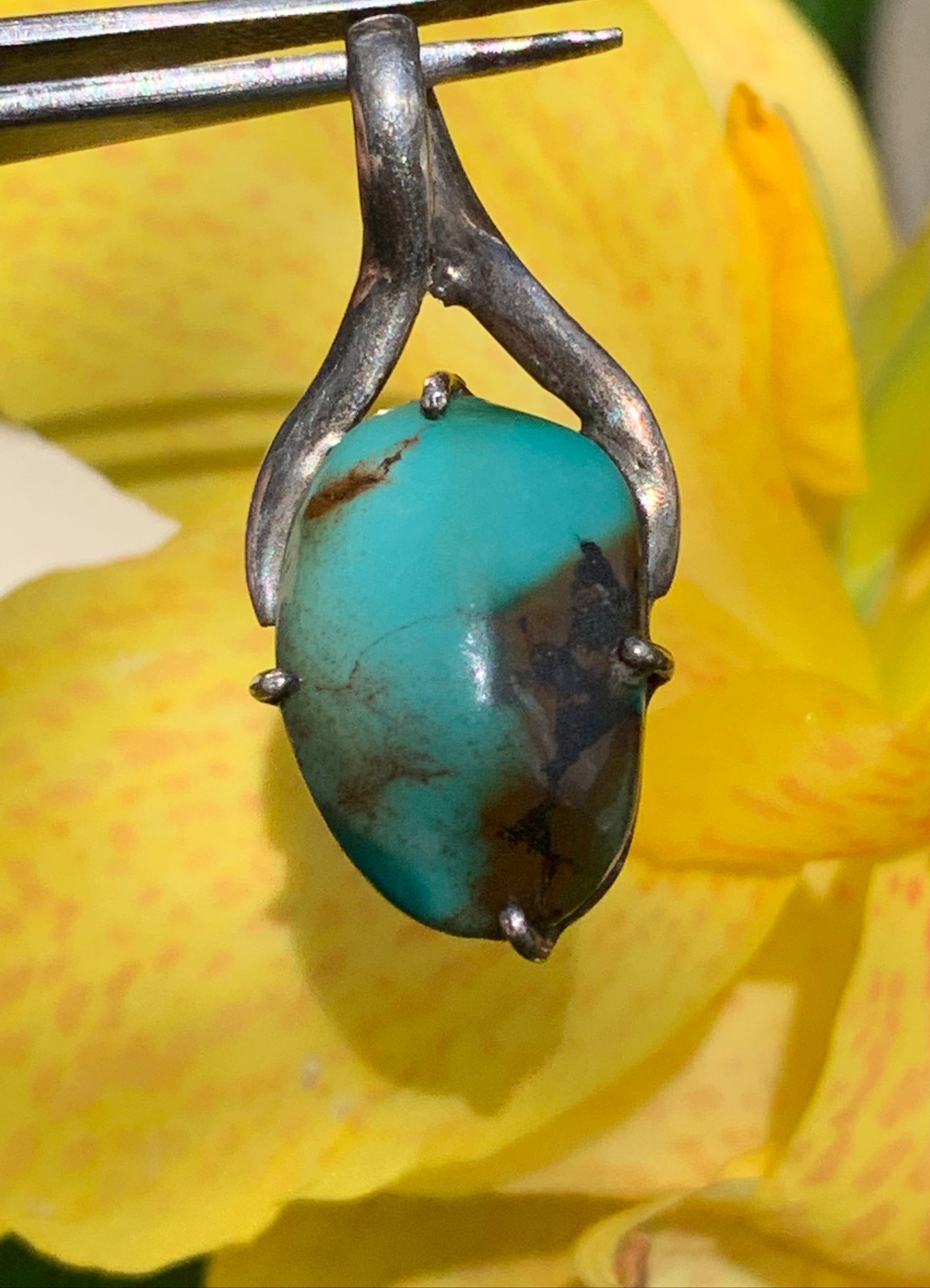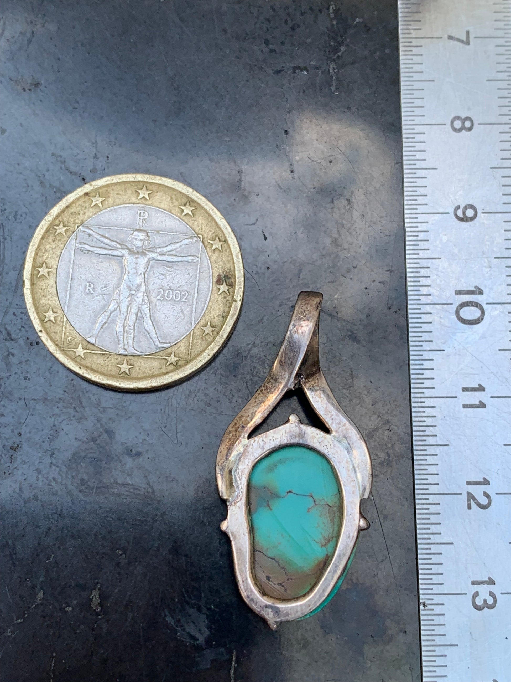Turquoise Perse ! Pendentif en Argent 925 de 35mm de hauteur x 16 de largeur x 5 d'épaisseur. Vendu avec cordon réglable de couleur noire !