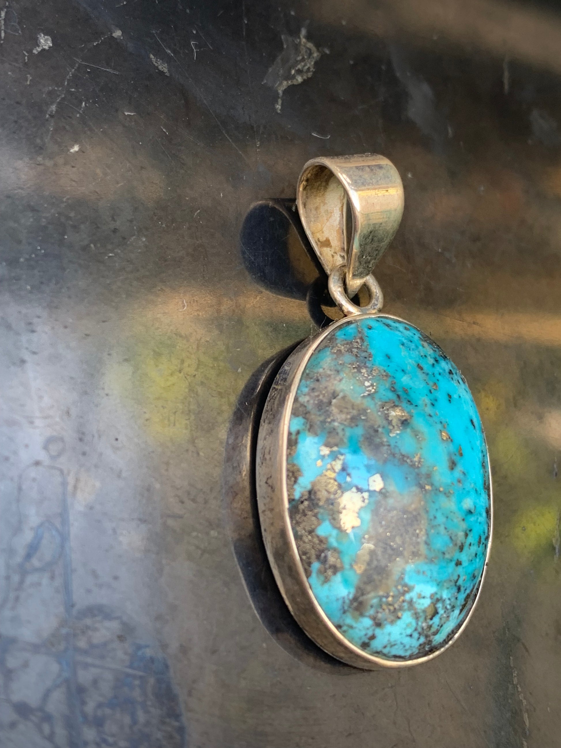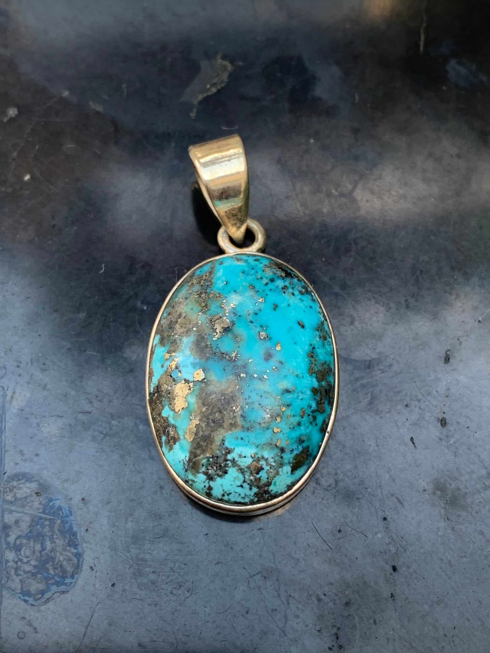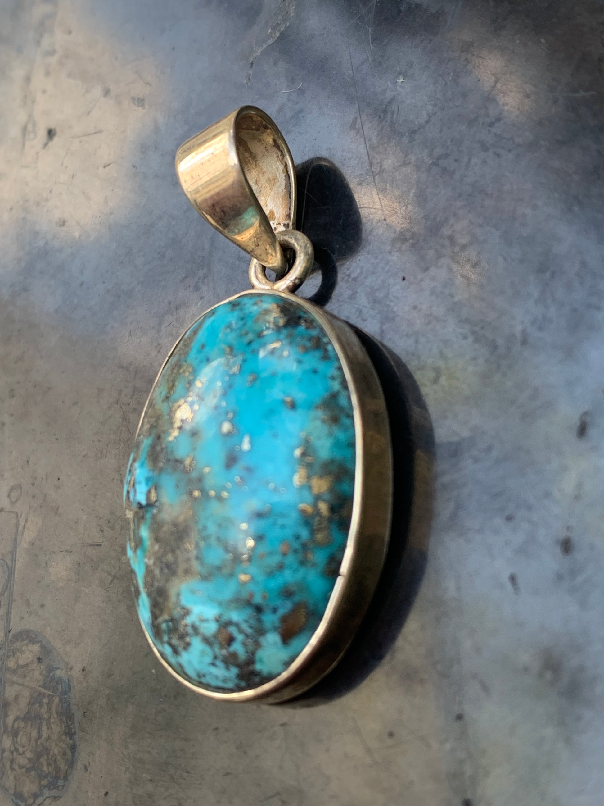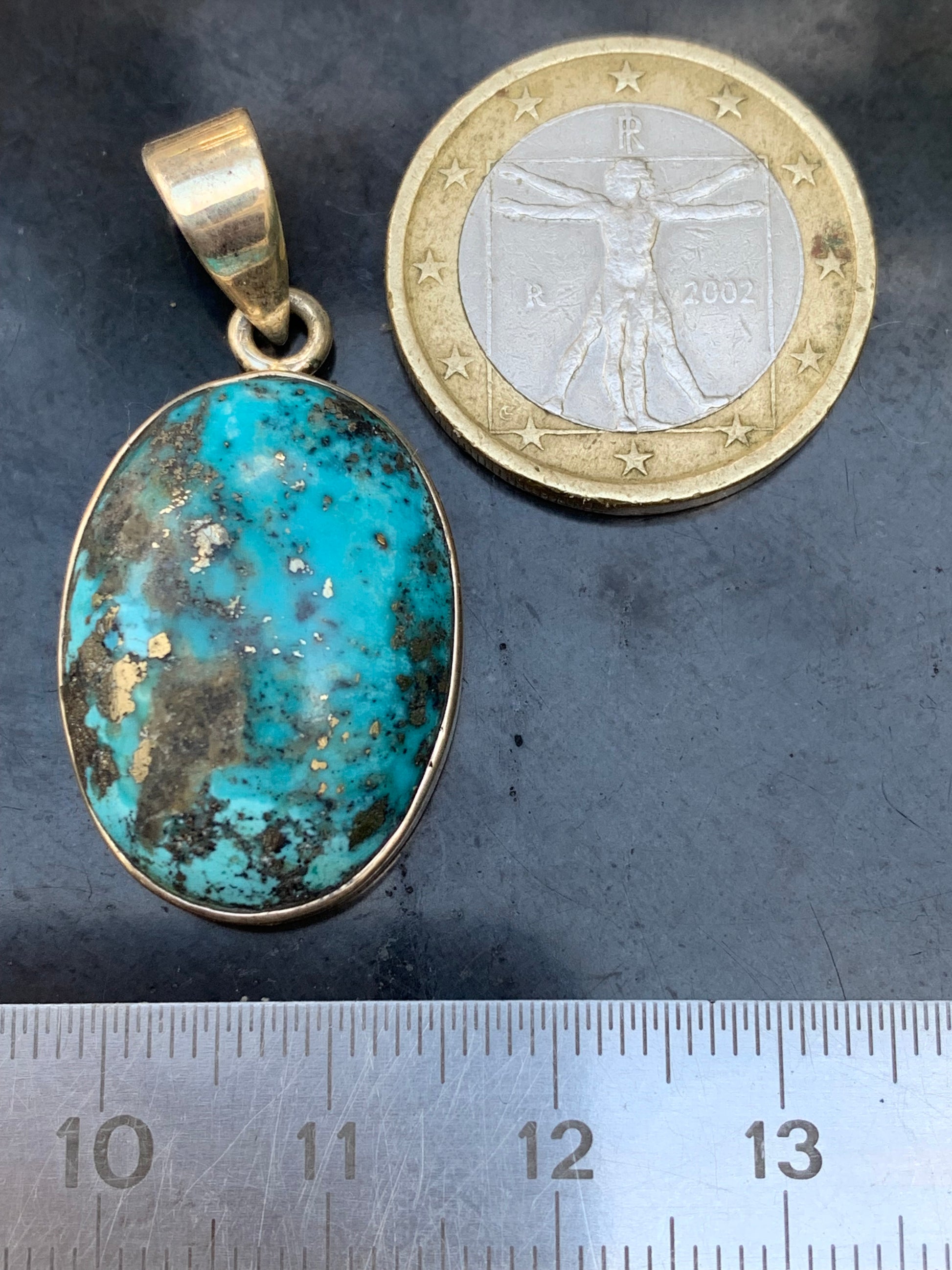 Turquoise Perse ! Pendentif en Argent 925 de 40mm de hauteur x 19 de largeur x 9 d'épaisseur. Vendu avec cordon réglable de couleur noire !