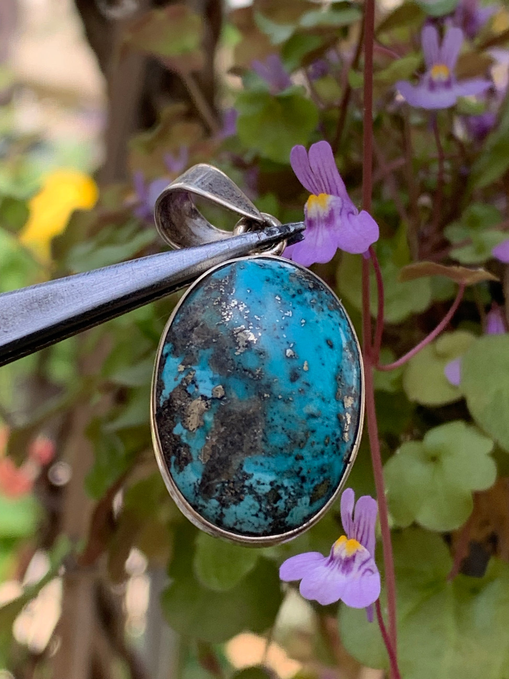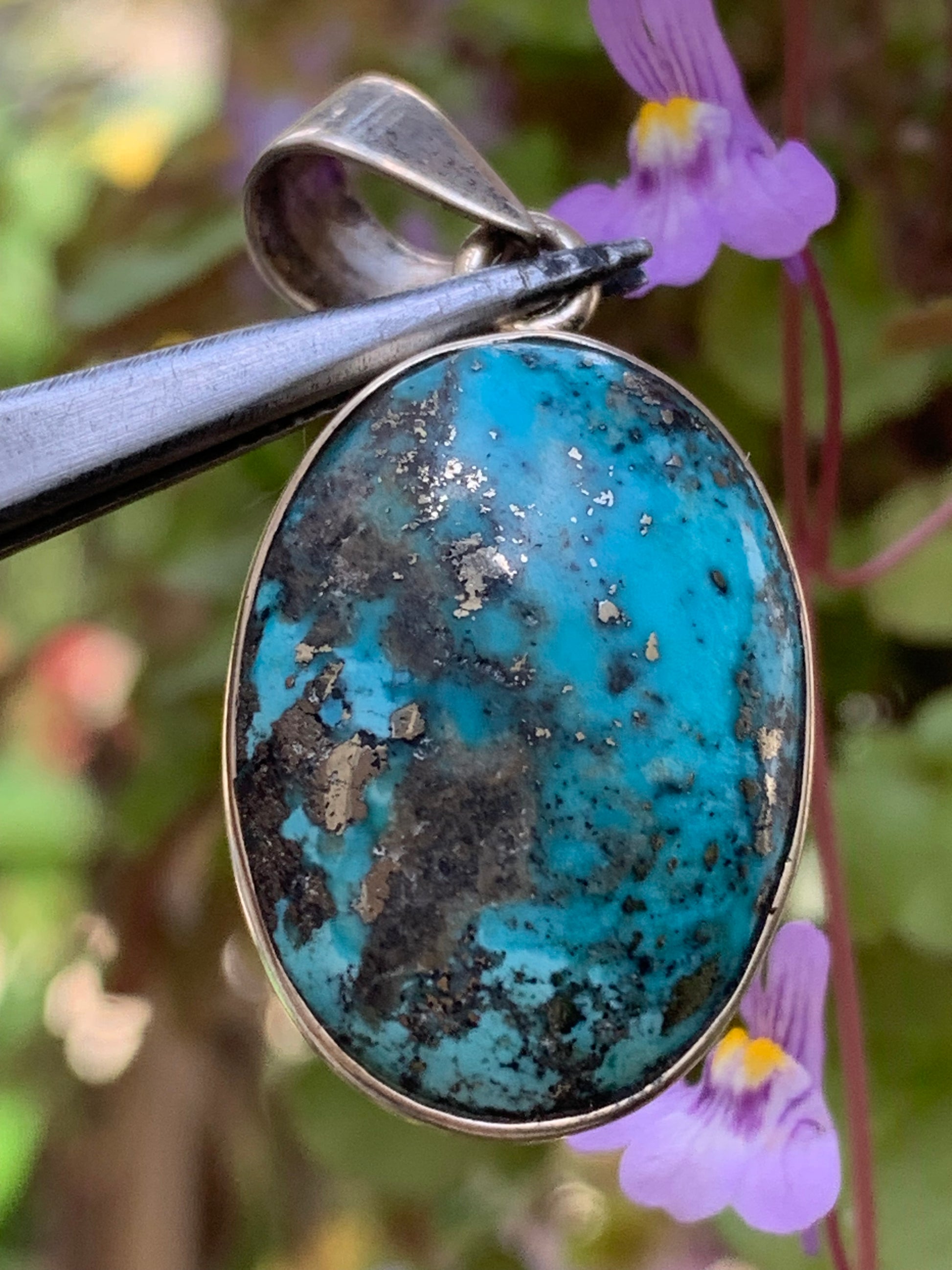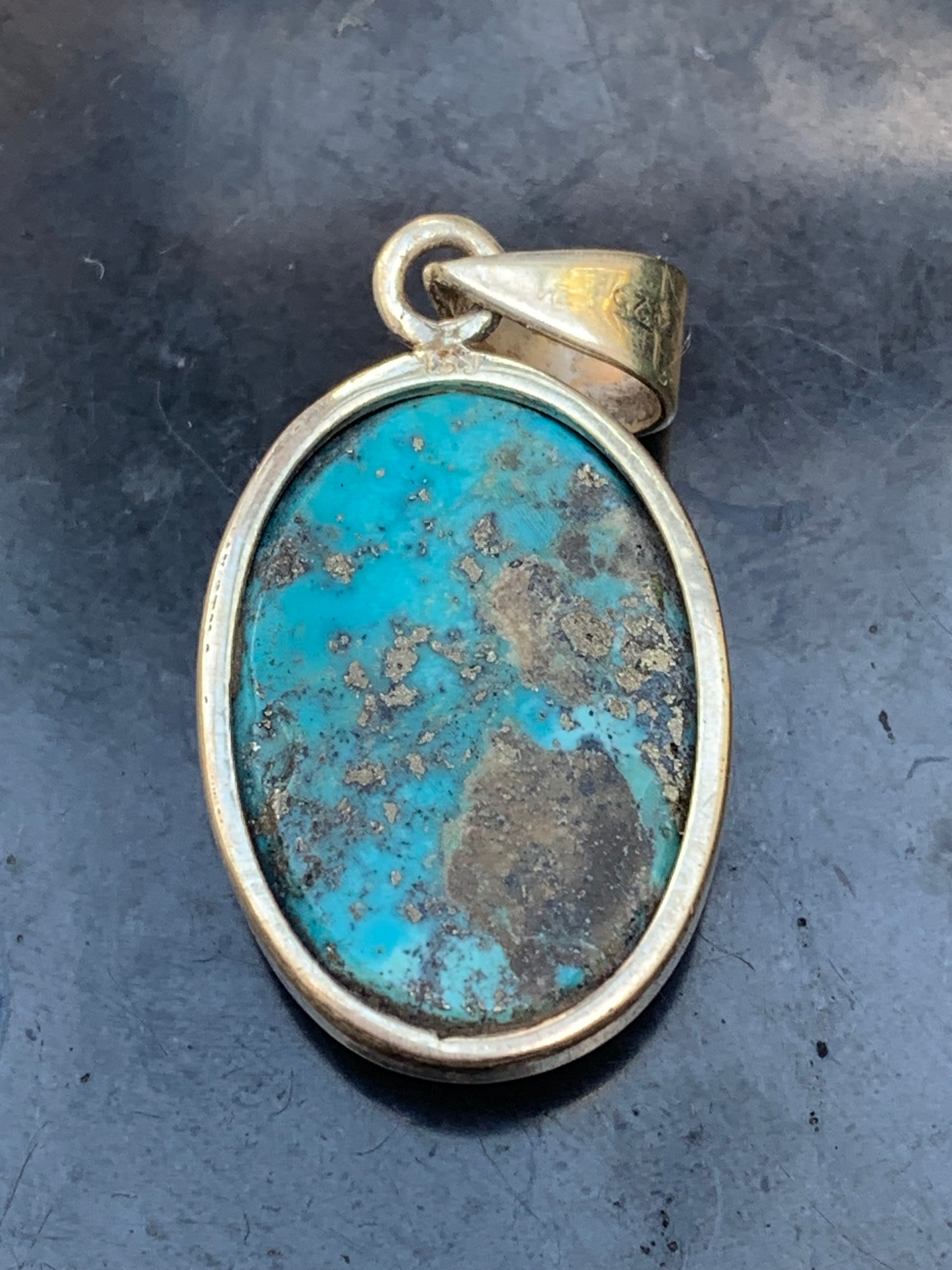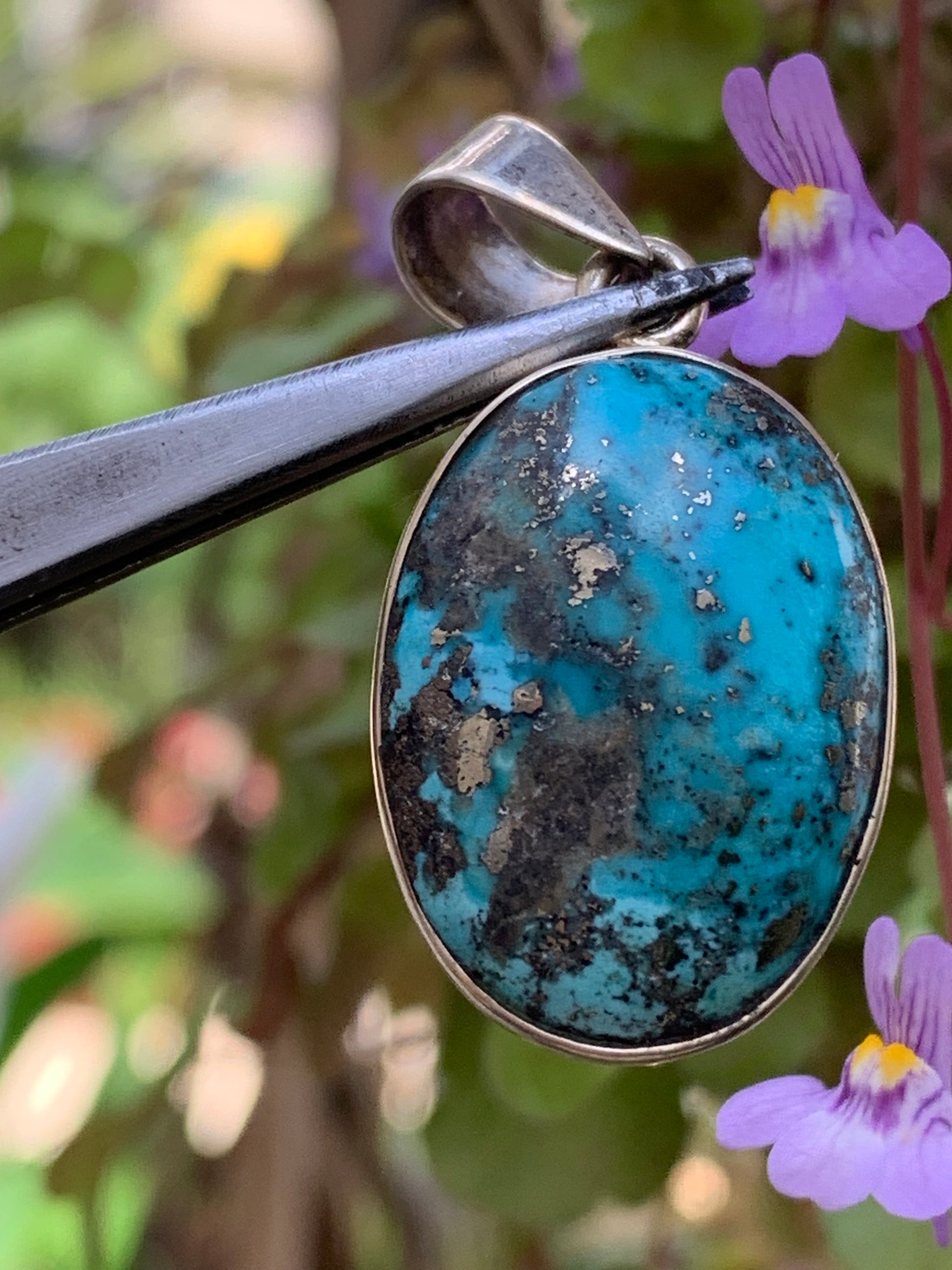 Turquoise Perse ! Pendentif en Argent 925 de 40mm de hauteur x 19 de largeur x 9 d'épaisseur. Vendu avec cordon réglable de couleur noire !